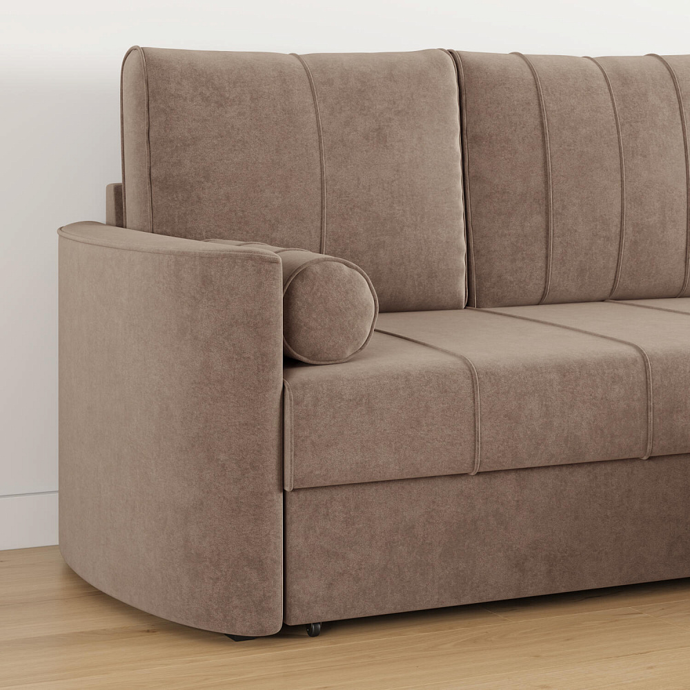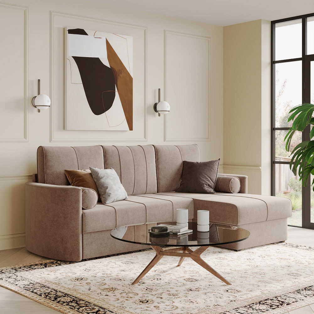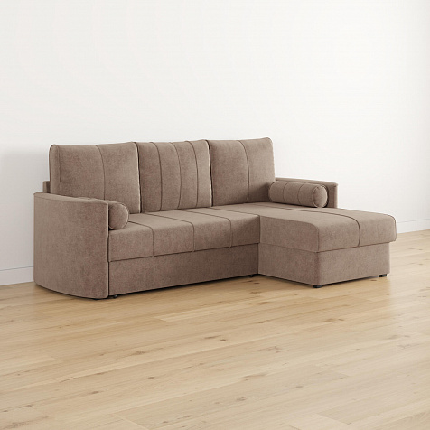 Угловой диван «Амми» — это идеальное сочетание надёжности, простоты и комфорта. Прямая строчка на сиденье и приспинных подушках создает завершённый образ и придает модели мягкую геометричность. Механизм «Дельфин» в сложенном виде поможет сэкономить пространство в комнате и использовать диван для ежедневного сна. Благодаря универсальному дизайну, качественным материалам и эргономичности диван станет главным местом гостиной в современном стиле, сканди или лофт.