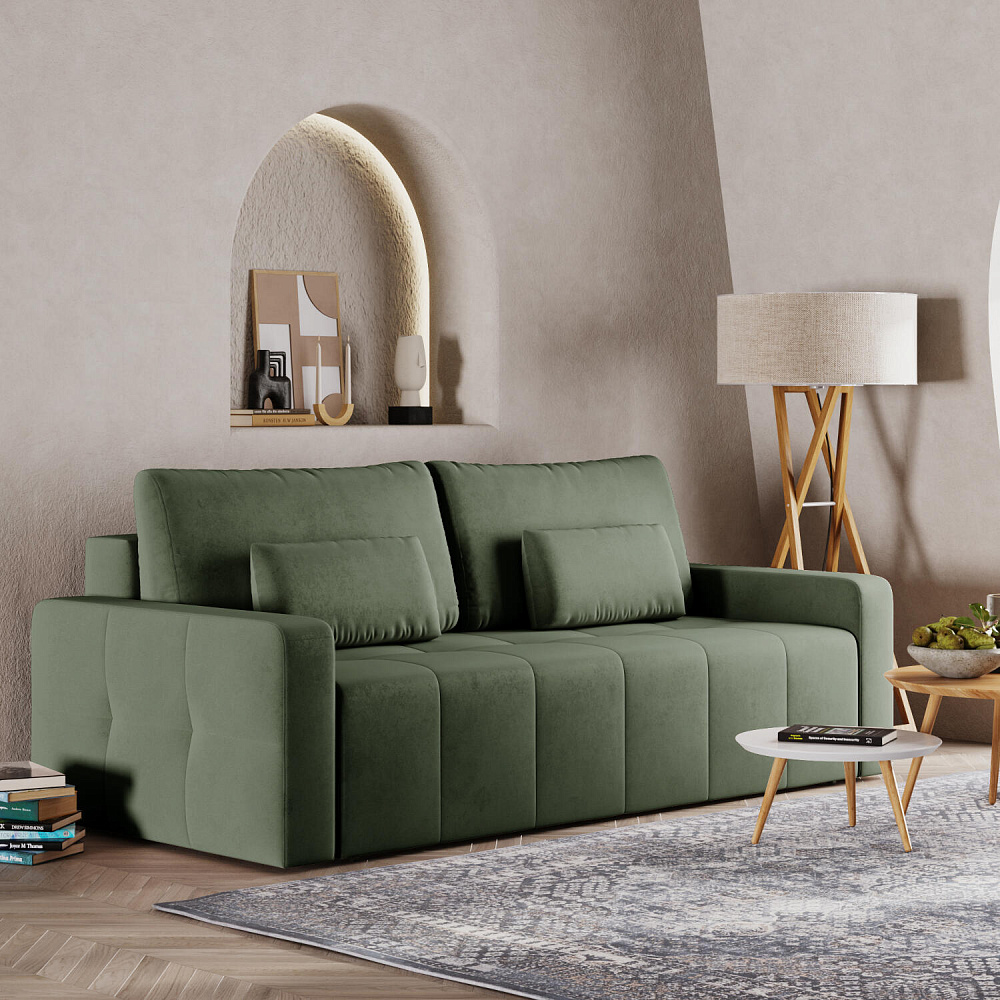 Диван «Тормес» — это находка для современной гостиной или стильной студии. Механизм трансформации «Еврокнижка» в сложенном виде позволяет сэкономить пространство в комнате, в разложенном — обеспечивает комфортное и ровное спальное место. Благодаря независимому пружинному блоку и высокопрочной пене, модель идеально подойдет для ежедневного сна. Спинка выполнена в обивочной ткани, поэтому диван можно расположить в центре помещения и зонировать пространство по своему вкусу.