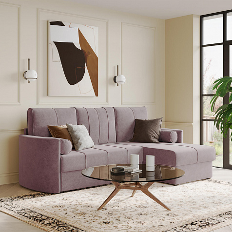 Угловой диван «Амми» — это идеальное сочетание надёжности, простоты и комфорта. Прямая строчка на сиденье и приспинных подушках создает завершённый образ и придает модели мягкую геометричность. Механизм «Дельфин» в сложенном виде поможет сэкономить пространство в комнате и использовать диван для ежедневного сна. Благодаря универсальному дизайну, качественным материалам и эргономичности диван станет главным местом гостиной в современном стиле, сканди или лофт.
