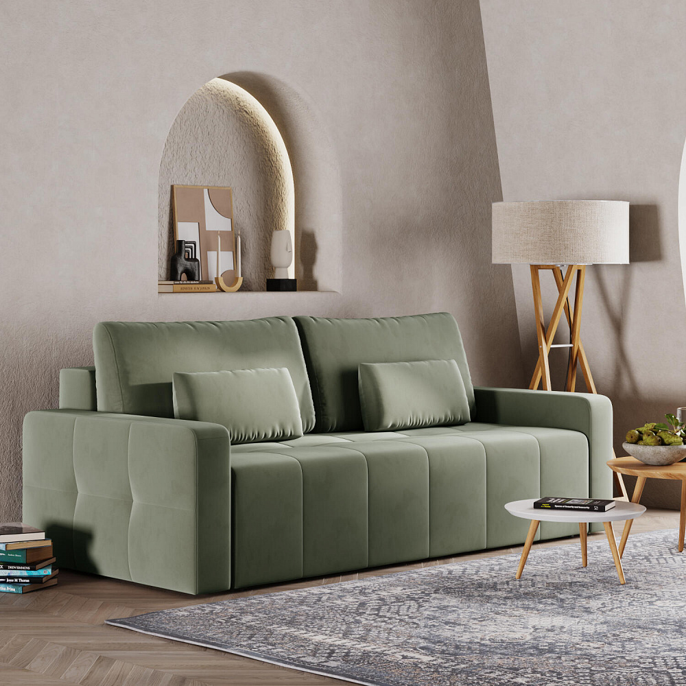 Диван «Тормес» — это находка для современной гостиной или стильной студии. Механизм трансформации «Еврокнижка» в сложенном виде позволяет сэкономить пространство в комнате, в разложенном — обеспечивает комфортное и ровное спальное место. Благодаря независимому пружинному блоку и высокопрочной пене, модель идеально подойдет для ежедневного сна. Спинка выполнена в обивочной ткани, поэтому диван можно расположить в центре помещения и зонировать пространство по своему вкусу.