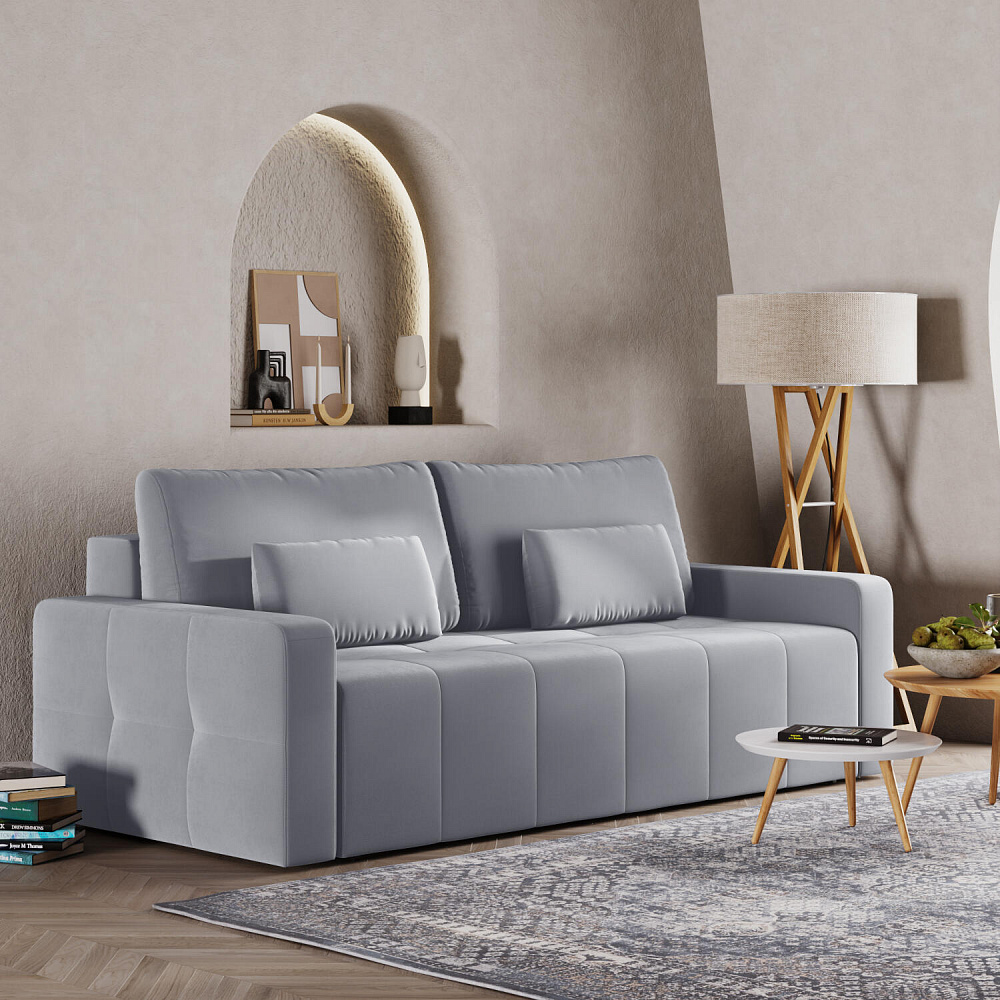 Диван «Тормес» — это находка для современной гостиной или стильной студии. Механизм трансформации «Еврокнижка» в сложенном виде позволяет сэкономить пространство в комнате, в разложенном — обеспечивает комфортное и ровное спальное место. Благодаря независимому пружинному блоку и высокопрочной пене, модель идеально подойдет для ежедневного сна. Спинка выполнена в обивочной ткани, поэтому диван можно расположить в центре помещения и зонировать пространство по своему вкусу.