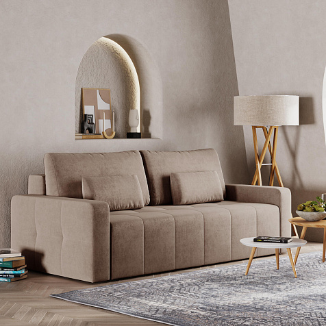 Диван «Тормес» — это находка для современной гостиной или стильной студии. Механизм трансформации «Еврокнижка» в сложенном виде позволяет сэкономить пространство в комнате, в разложенном — обеспечивает комфортное и ровное спальное место. Благодаря независимому пружинному блоку и высокопрочной пене, модель идеально подойдет для ежедневного сна. Спинка выполнена в обивочной ткани, поэтому диван можно расположить в центре помещения и зонировать пространство по своему вкусу.