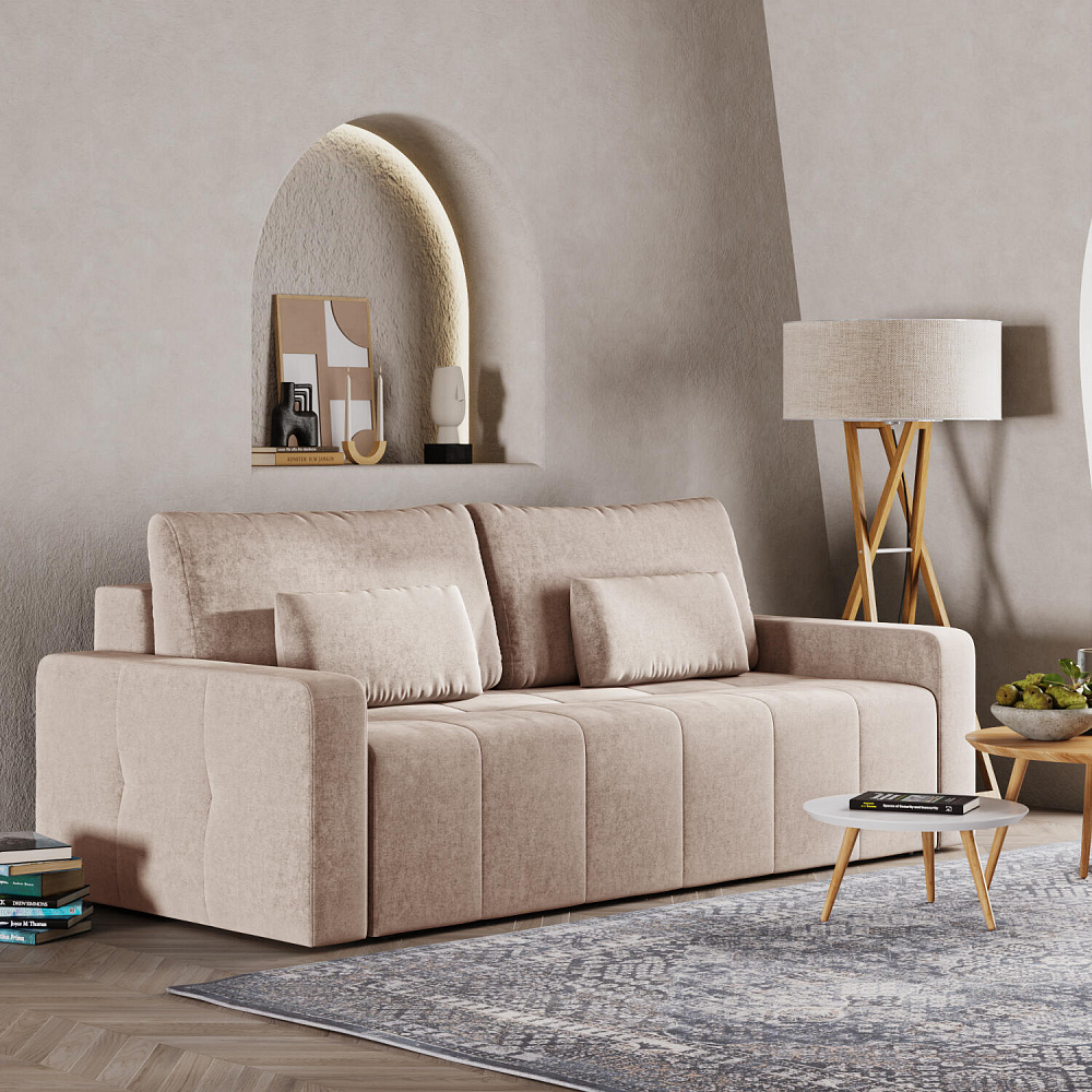 Диван «Тормес» — это находка для современной гостиной или стильной студии. Механизм трансформации «Еврокнижка» в сложенном виде позволяет сэкономить пространство в комнате, в разложенном — обеспечивает комфортное и ровное спальное место. Благодаря независимому пружинному блоку и высокопрочной пене, модель идеально подойдет для ежедневного сна. Спинка выполнена в обивочной ткани, поэтому диван можно расположить в центре помещения и зонировать пространство по своему вкусу.