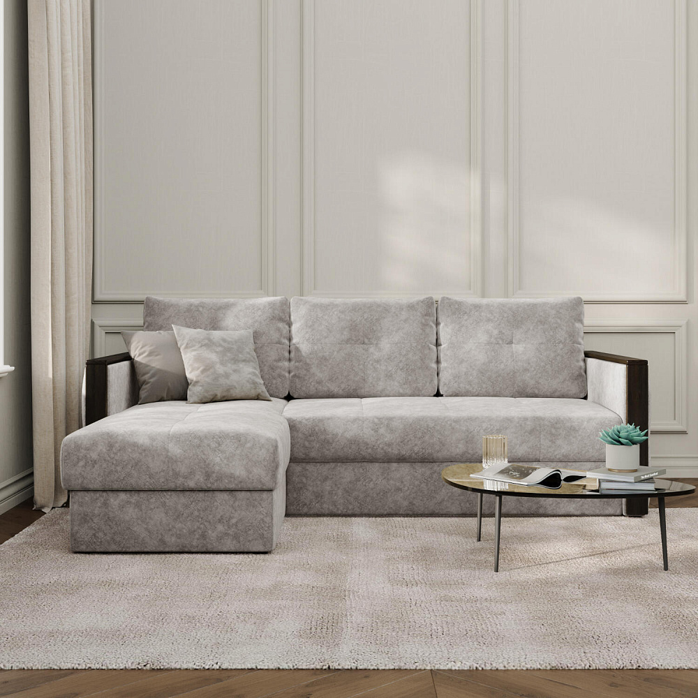 Диван угловой «Винг» объединяет строгие геометрические формы и мягкую воздушность. Механизм трансформации «Дельфин» в сложенном виде позволяет сэкономить пространство в комнате, в разложенном - обеспечивает комфортное и ровное спальное место. Спинка дивана выполнена в той же обивке, что и основная часть, что даёт возможность использовать диван для зонирования комнаты. Горизонтальную поверхность на подлокотниках можно использовать в качестве мини-столешницы для небольших предметов.