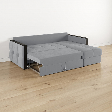 Диван угловой «Винг» объединяет строгие геометрические формы и мягкую воздушность. Механизм трансформации «Дельфин» в сложенном виде позволяет сэкономить пространство в комнате, в разложенном - обеспечивает комфортное и ровное спальное место. Спинка дивана выполнена в той же обивке, что и основная часть, что даёт возможность использовать диван для зонирования комнаты. Горизонтальную поверхность на подлокотниках можно использовать в качестве мини-столешницы для небольших предметов.