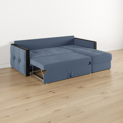 Диван угловой «Винг» объединяет строгие геометрические формы и мягкую воздушность. Механизм трансформации «Дельфин» в сложенном виде позволяет сэкономить пространство в комнате, в разложенном - обеспечивает комфортное и ровное спальное место. Спинка дивана выполнена в той же обивке, что и основная часть, что даёт возможность использовать диван для зонирования комнаты. Горизонтальную поверхность на подлокотниках можно использовать в качестве мини-столешницы для небольших предметов.