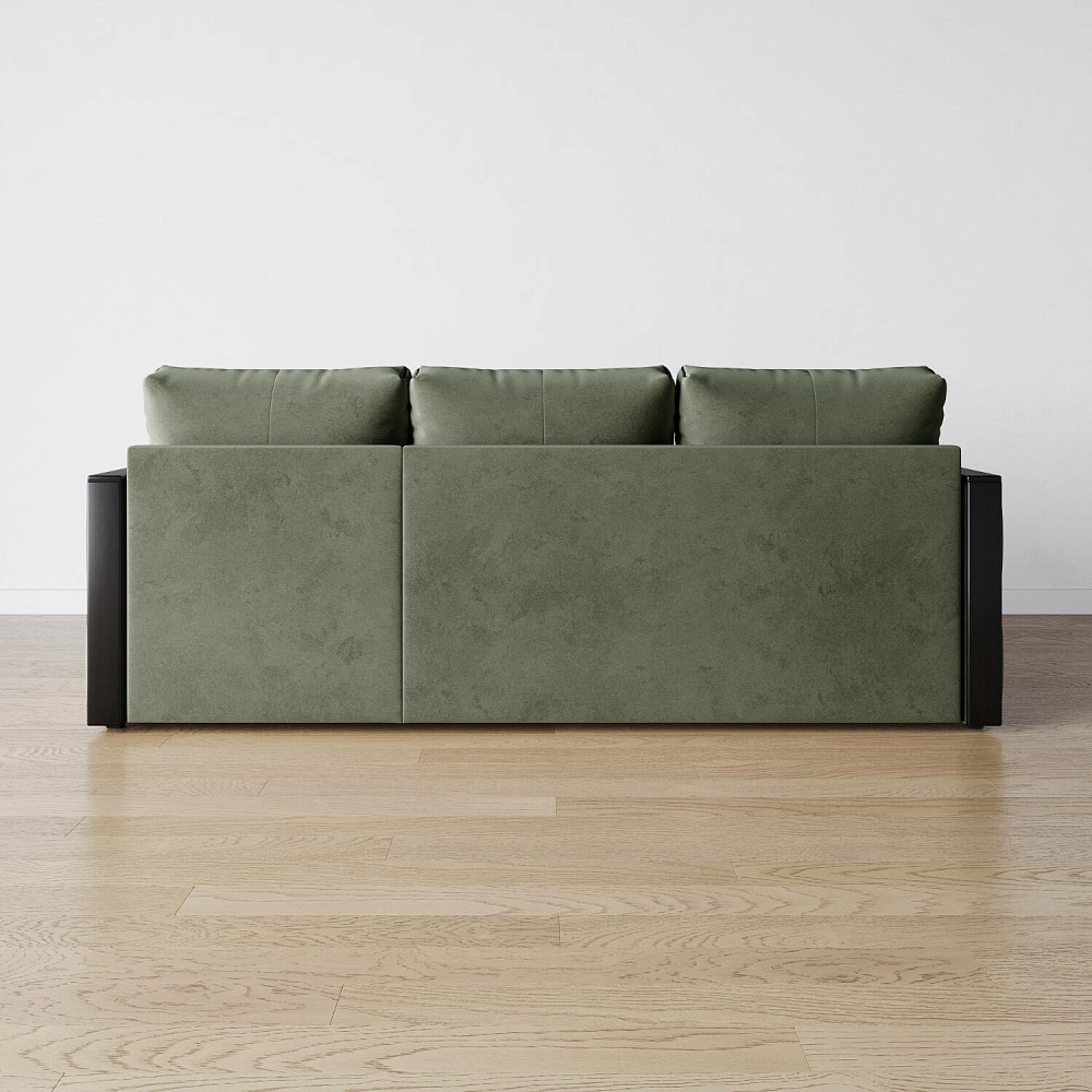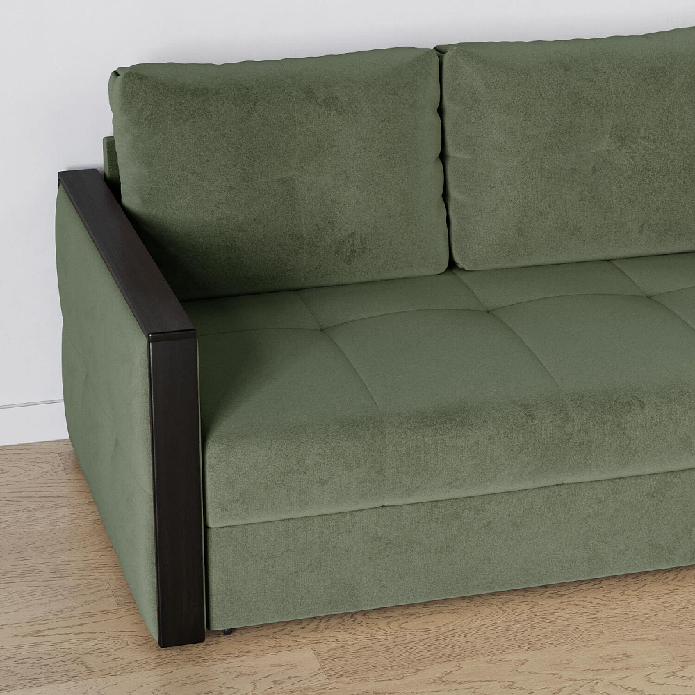 - Обивка из велюра. Обивка дивана выполнена из стильной и приятной на ощупь ткани, которая отлично пропускает воздух, хорошо тянется, устойчива к истиранию и выцветанию.