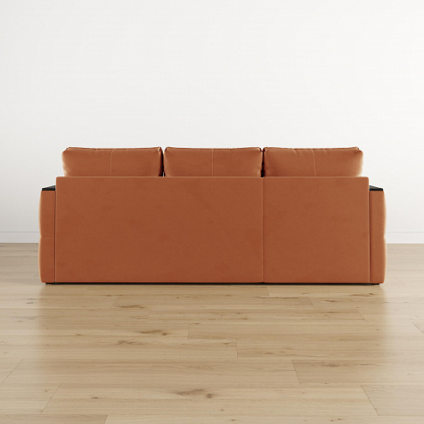 - Малая спинка и дизайн на 360 градусов. Благодаря малой спинке диван можно устанавливать вплотную к стене. В то же время диван прекрасно подойдёт для зонирования помещений, так как задняя спинка выполнена в обивочной ткани.