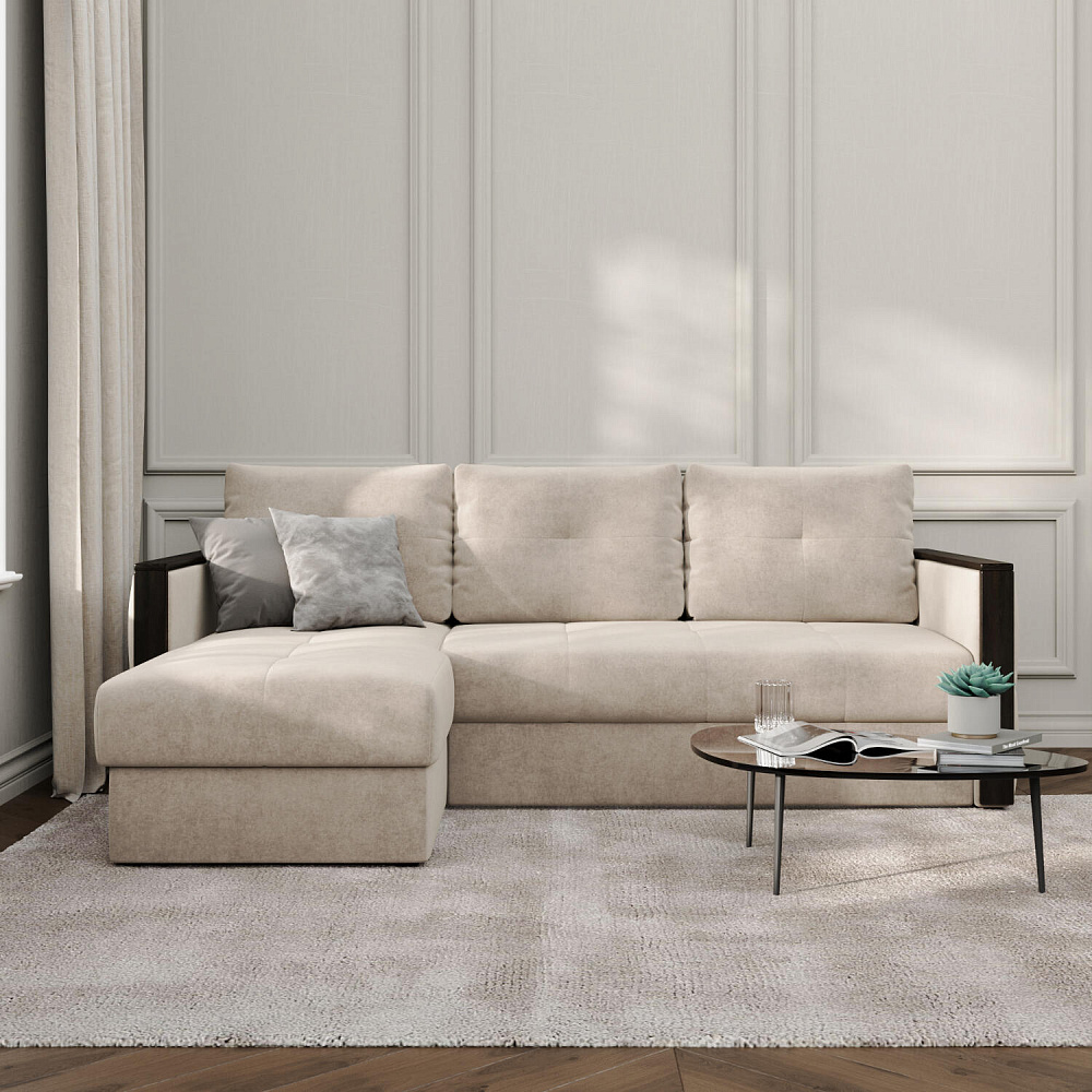 Диван угловой «Винг» объединяет строгие геометрические формы и мягкую воздушность. Механизм трансформации «Дельфин» в сложенном виде позволяет сэкономить пространство в комнате, в разложенном - обеспечивает комфортное и ровное спальное место. Спинка дивана выполнена в той же обивке, что и основная часть, что даёт возможность использовать диван для зонирования комнаты. Горизонтальную поверхность на подлокотниках можно использовать в качестве мини-столешницы для небольших предметов.