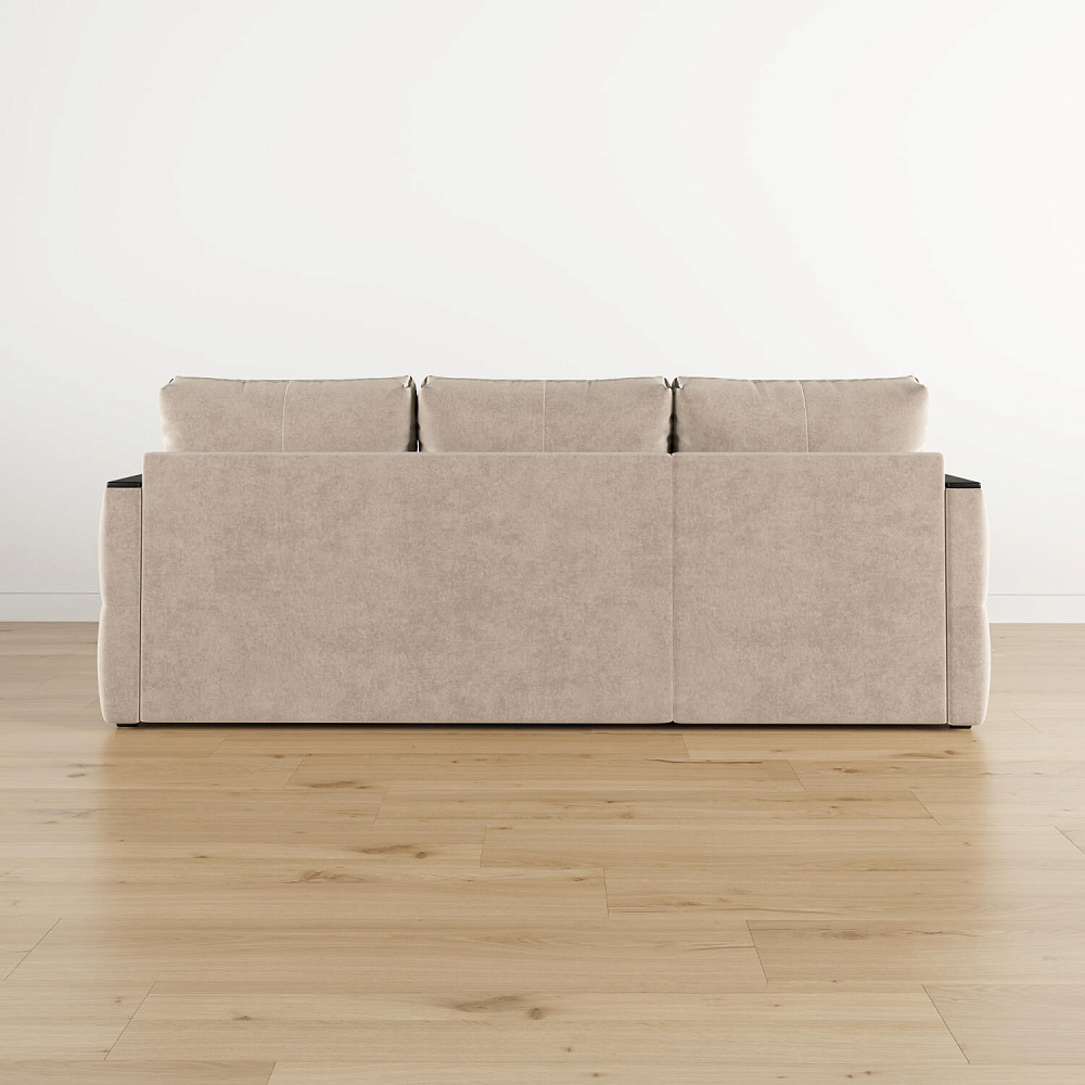 - Малая спинка и дизайн на 360 градусов. Благодаря малой спинке диван можно устанавливать вплотную к стене. В то же время диван прекрасно подойдёт для зонирования помещений, так как задняя спинка выполнена в обивочной ткани.