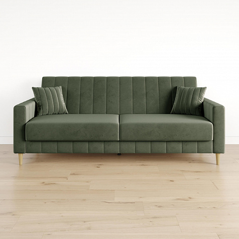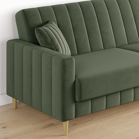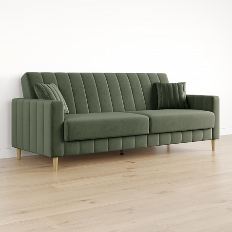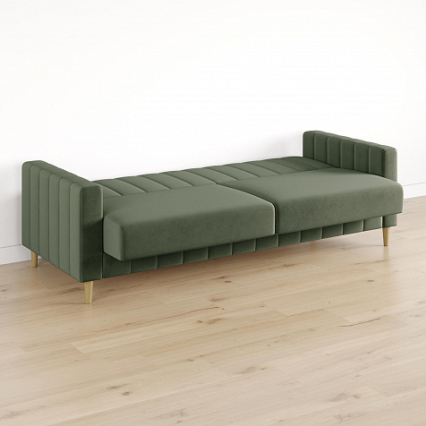 Механизм трансформации «Книжка». Чтобы разложить диван, нужно приподнять сиденье до щелчка и опустить вниз. Лучше ставить диван на расстоянии от стены, чтобы не двигать его при трансформации.