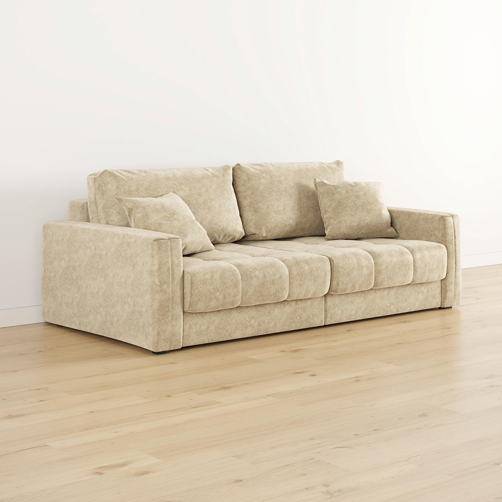 Диван «Дензел» — лучший вариант для ценителей комфорта в сочетании со стильным дизайном. Диван обладает глубокой посадкой, а приспинные и декоративные подушки позволят создать самое удобное место для отдыха. Спинка дивана выполнена в той же обивке, что и основная часть, что даёт возможность использовать диван для зонирования комнаты.