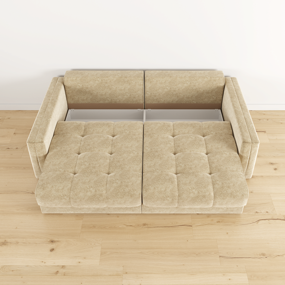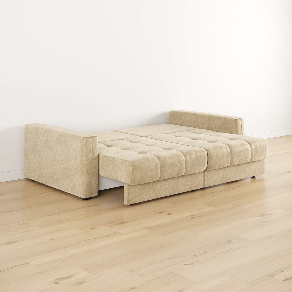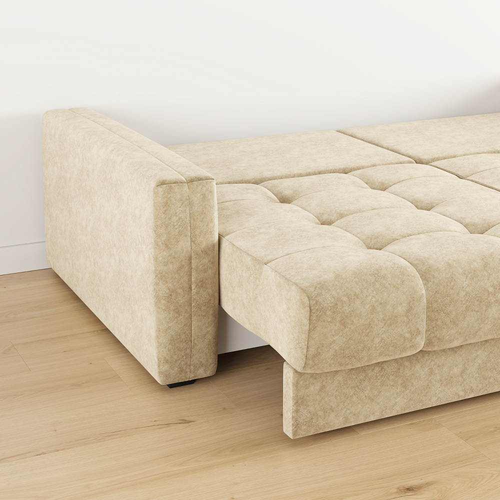 Бережный механизм трансформации «Тик-Так» двухсекционный. Напольное покрытие останется целым — механизм выталкивает сиденье вверх, которое словно шагает вперёд, не касаясь пола. Трансформация лёгкая - справится даже ребёнок. Половинки дивана раскладываются независимо друг от друга.