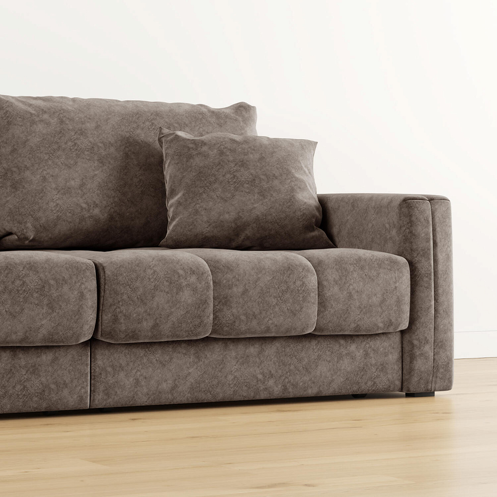 Диван «Дензел» — лучший вариант для ценителей комфорта в сочетании со стильным дизайном. Диван обладает глубокой посадкой, а приспинные и декоративные подушки позволят создать самое удобное место для отдыха. Спинка дивана выполнена в той же обивке, что и основная часть, что даёт возможность использовать диван для зонирования комнаты.