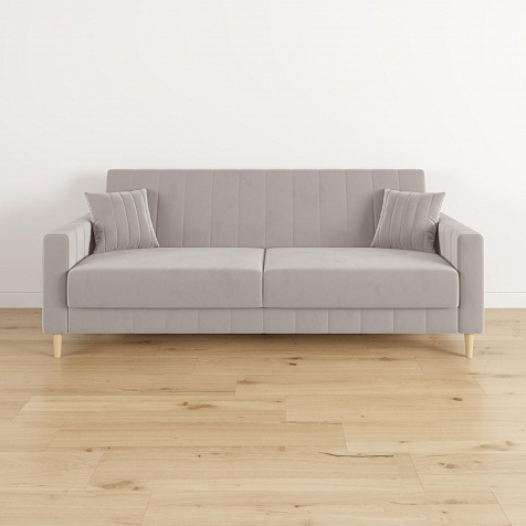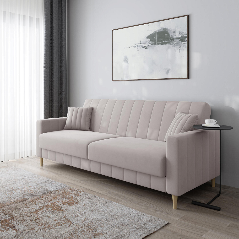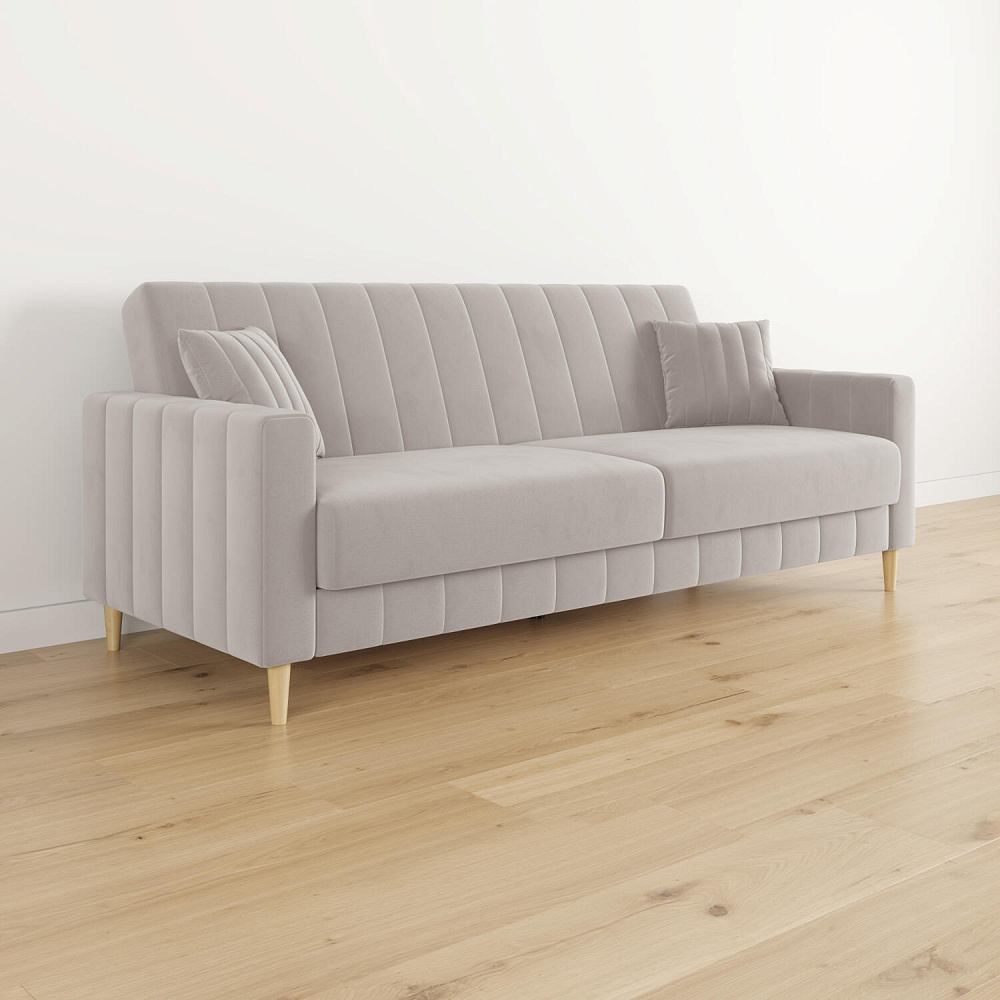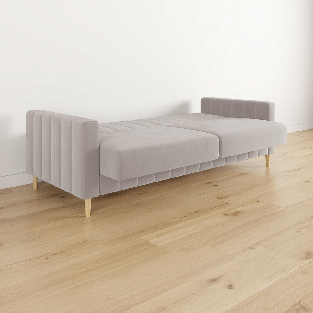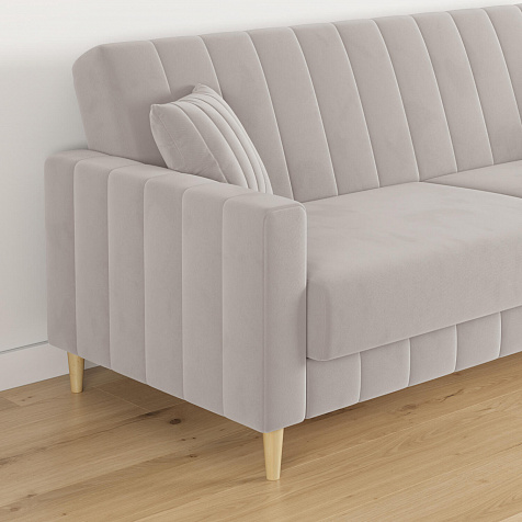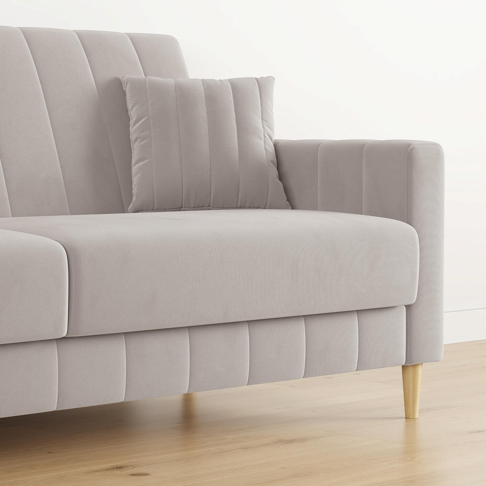 Диван «Бронкс» дополнит гостиную в современном или скандинавском стиле. Модель сочетает в себе минималистичный дизайн, спальное место и ящик для хранения. Задняя часть спинки выполнена в основной обивочной ткани, что дает возможность свободно размещать диван и зонировать комнату. Высокие опоры из натурального дерева создают легкий эффект невесомости и значительно облегчают процесс уборки.