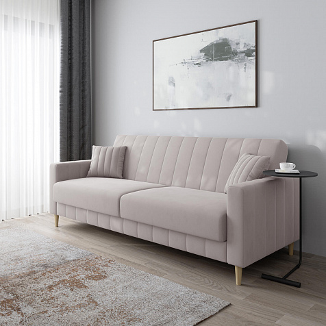 Механизм трансформации «Книжка». Чтобы разложить диван, нужно приподнять спинку и сиденье до щелчка и положить их вниз. Лучше ставить диван на расстоянии от стены, чтобы не двигать его при трансформации.