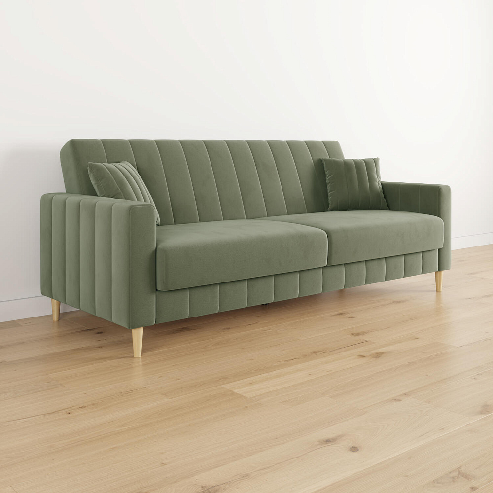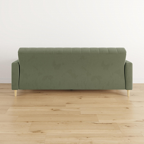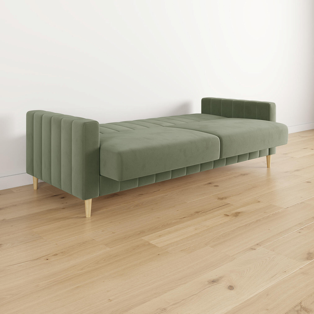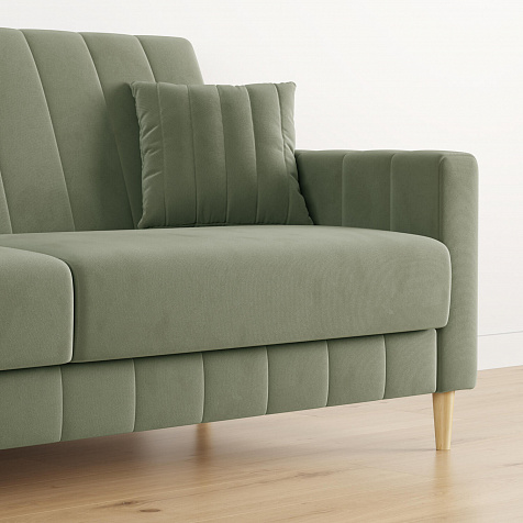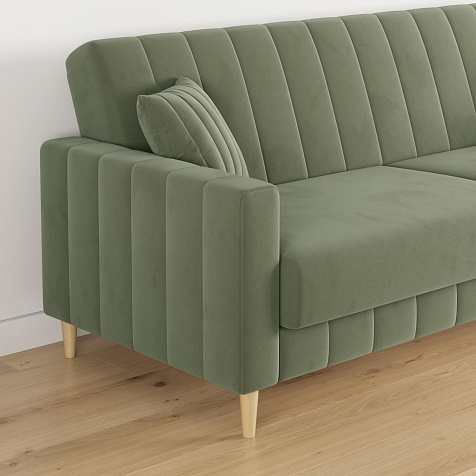 Диван «Бронкс» дополнит гостиную в современном или скандинавском стиле. Модель сочетает в себе минималистичный дизайн, спальное место и ящик для хранения. Задняя часть спинки выполнена в основной обивочной ткани, что дает возможность свободно размещать диван и зонировать комнату. Высокие опоры из натурального дерева создают легкий эффект невесомости и значительно облегчают процесс уборки.