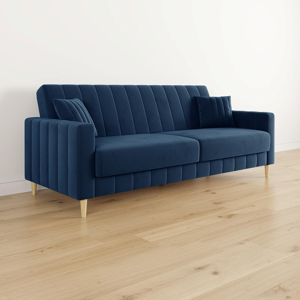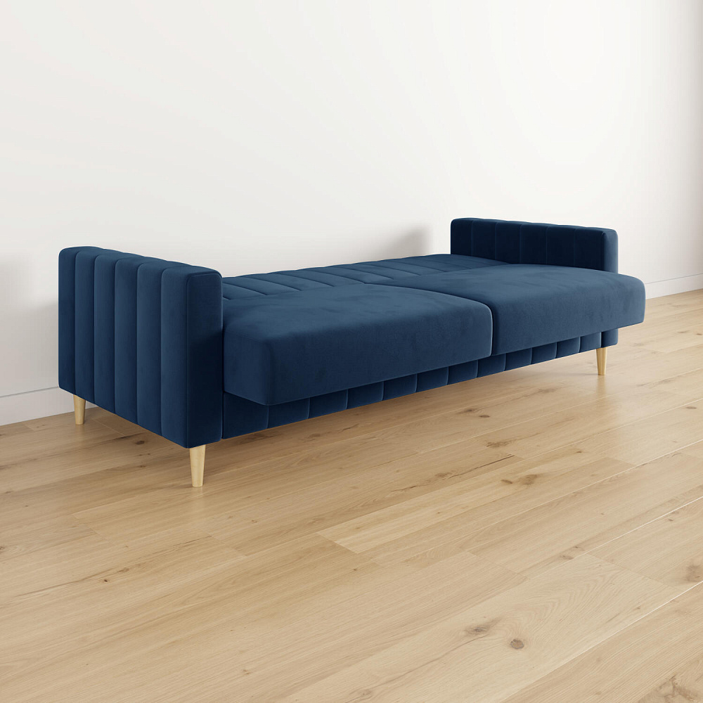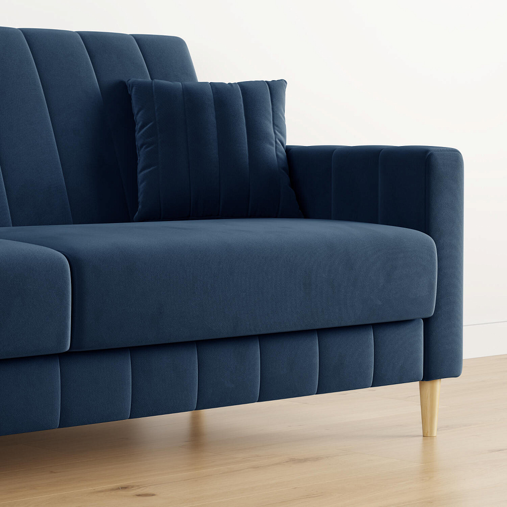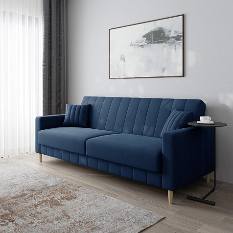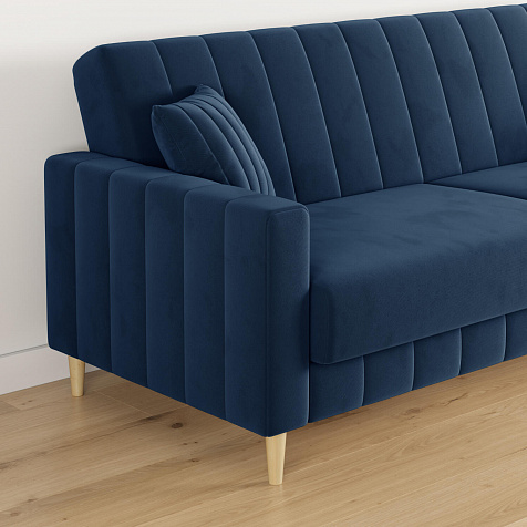 Диван «Бронкс» дополнит гостиную в современном или скандинавском стиле. Модель сочетает в себе минималистичный дизайн, спальное место и ящик для хранения. Задняя часть спинки выполнена в основной обивочной ткани, что дает возможность свободно размещать диван и зонировать комнату. Высокие опоры из натурального дерева создают легкий эффект невесомости и значительно облегчают процесс уборки.