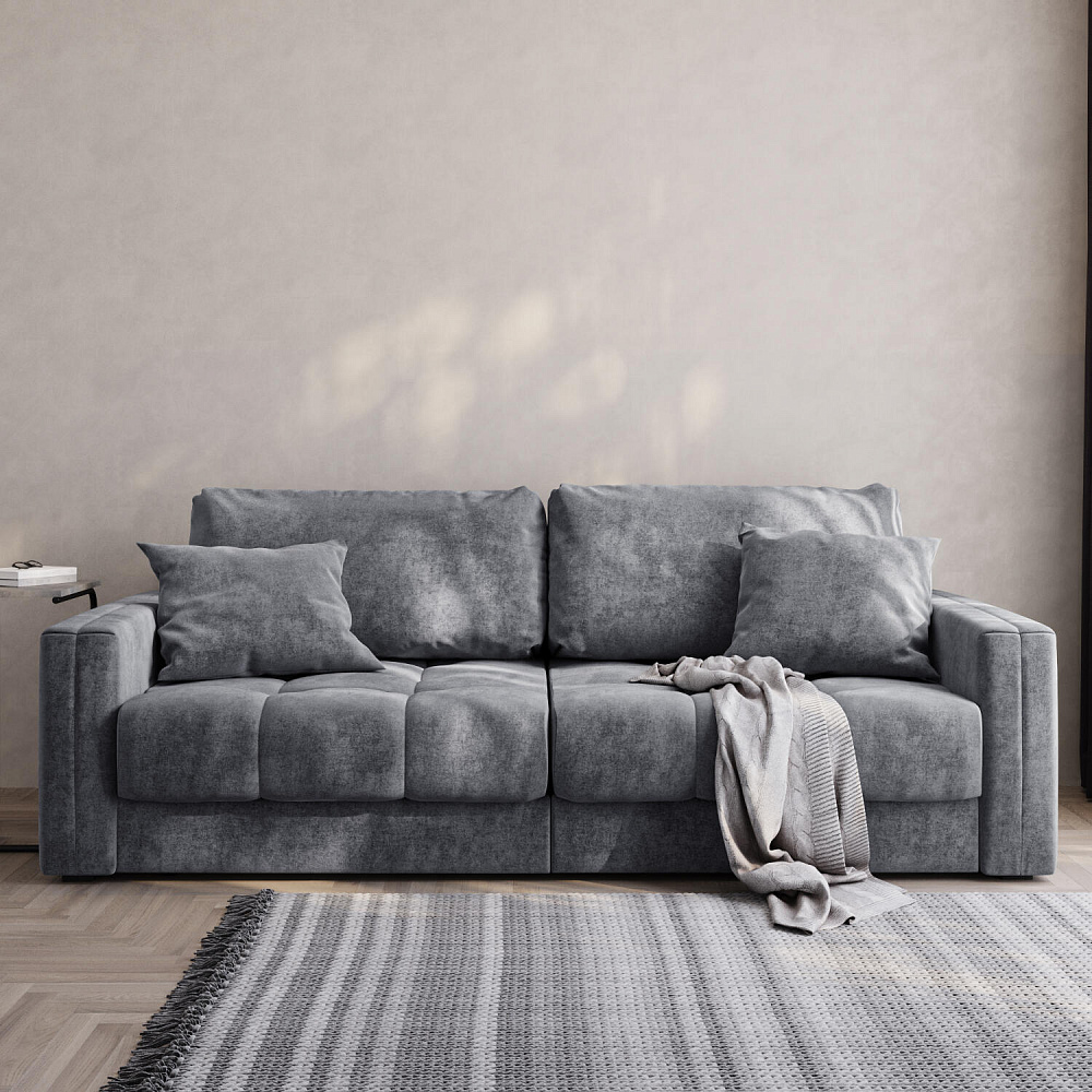 Диван «Дензел» — лучший вариант для ценителей комфорта в сочетании со стильным дизайном. Диван обладает глубокой посадкой, а приспинные и декоративные подушки позволят создать самое удобное место для отдыха. Спинка дивана выполнена в той же обивке, что и основная часть, что даёт возможность использовать диван для зонирования комнаты.