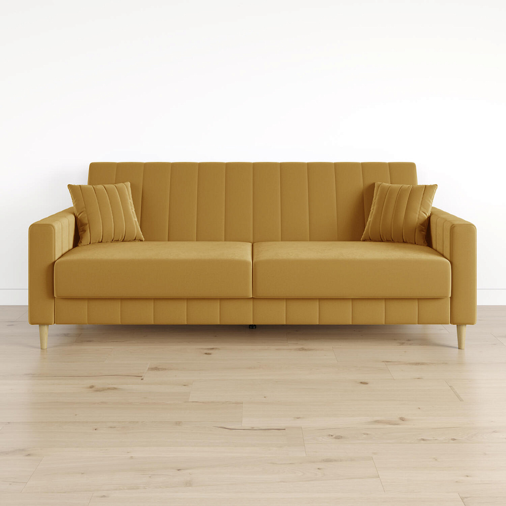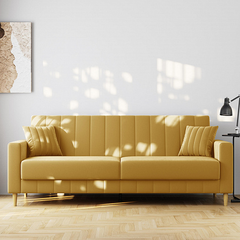 Диван «Бронкс» дополнит гостиную в современном или скандинавском стиле. Модель сочетает в себе минималистичный дизайн, спальное место и ящик для хранения. Задняя часть спинки выполнена в основной обивочной ткани, что дает возможность свободно размещать диван и зонировать комнату. Высокие опоры из натурального дерева создают легкий эффект невесомости и значительно облегчают процесс уборки.
