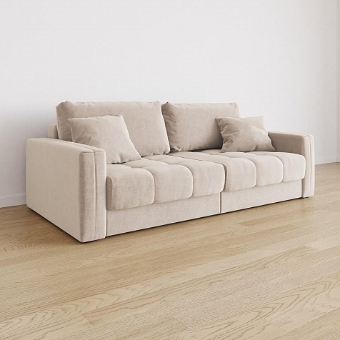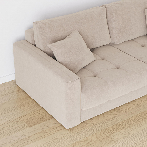 Диван «Дензел» — лучший вариант для ценителей комфорта в сочетании со стильным дизайном. Диван обладает глубокой посадкой, а приспинные и декоративные подушки позволят создать самое удобное место для отдыха. Спинка дивана выполнена в той же обивке, что и основная часть, что даёт возможность использовать диван для зонирования комнаты.