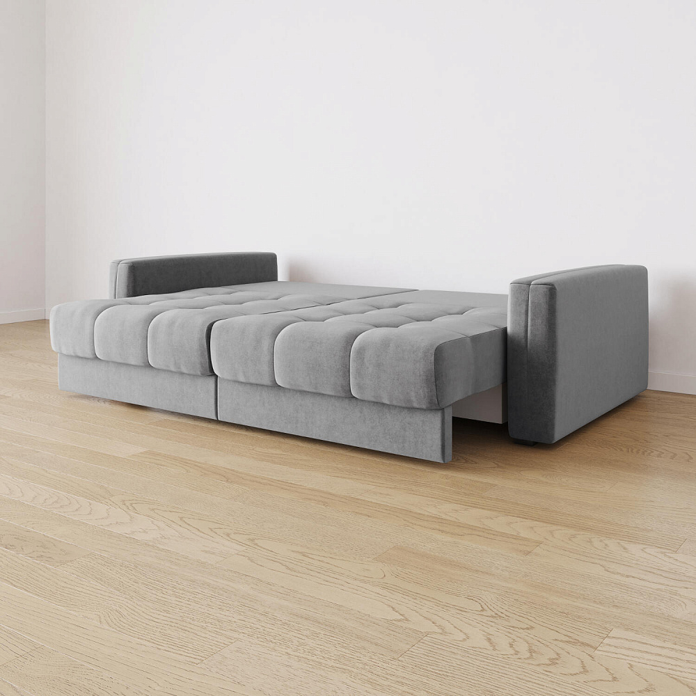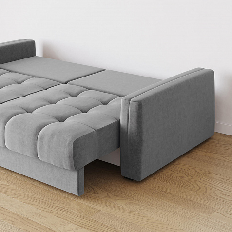 - Бережный механизм трансформации «Тик-Так» двухсекционный. Напольное покрытие останется целым - механизм выталкивает сиденье вверх, которое словно шагает вперёд, не касаясь пола. Трансформация лёгкая - справится даже ребёнок. Половинки дивана раскладываются независимо друг от друга.