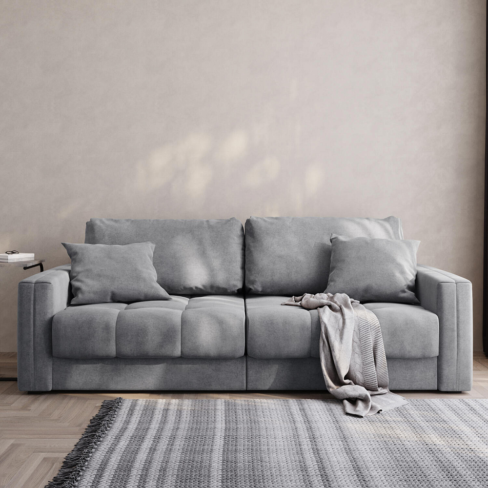 Диван «Дензел» — лучший вариант для ценителей комфорта в сочетании со стильным дизайном. Диван обладает глубокой посадкой, а приспинные и декоративные подушки позволят создать самое удобное место для отдыха. Спинка дивана выполнена в той же обивке, что и основная часть, что даёт возможность использовать диван для зонирования комнаты.