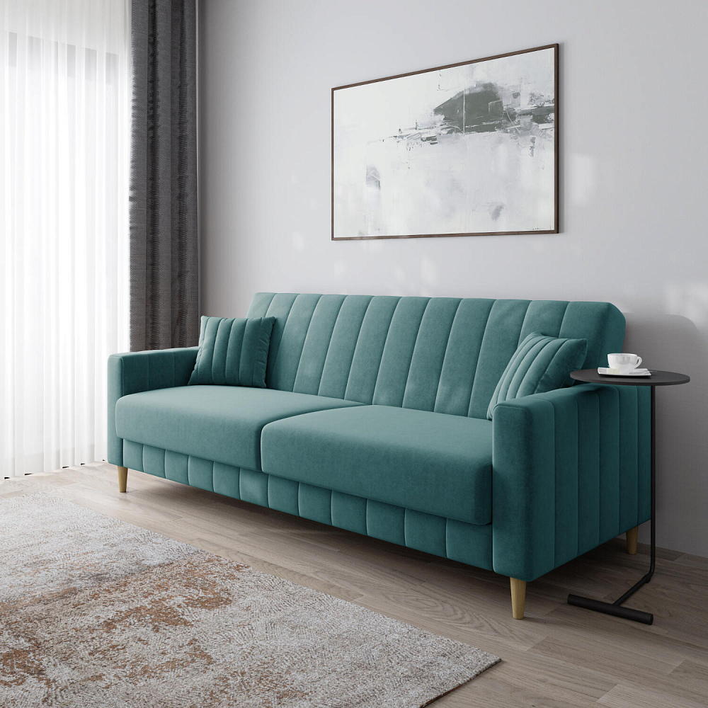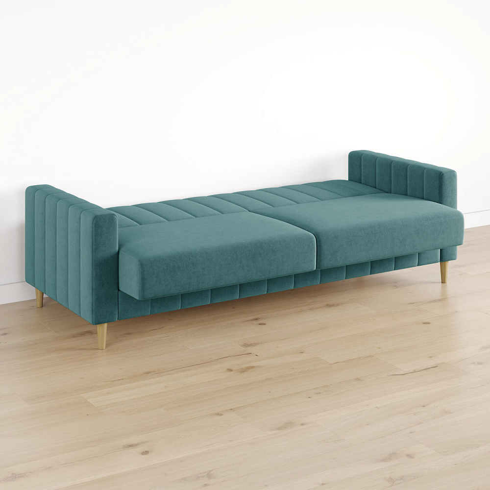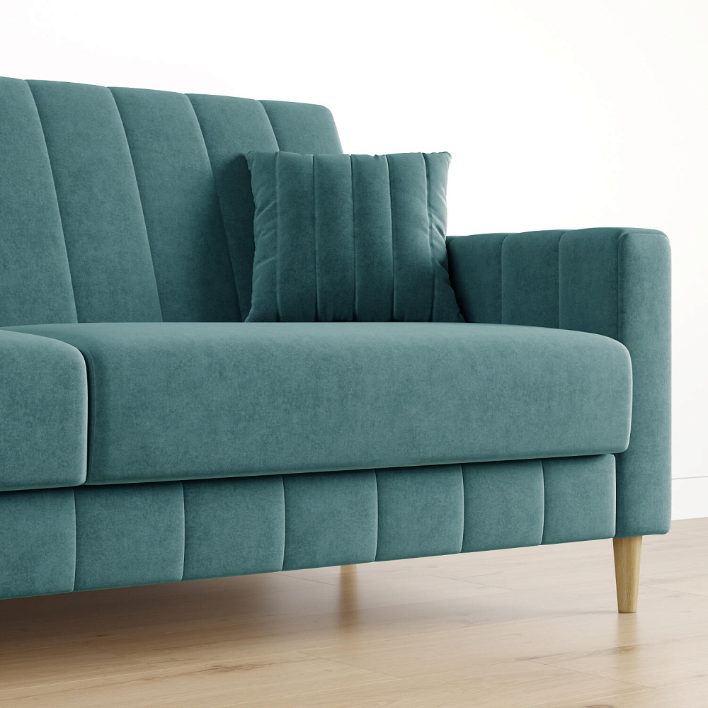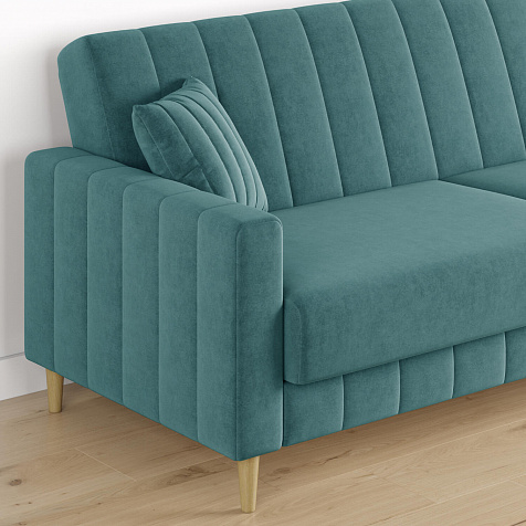 Диван «Бронкс» дополнит гостиную в современном или скандинавском стиле. Модель сочетает в себе минималистичный дизайн, спальное место и ящик для хранения. Задняя часть спинки выполнена в основной обивочной ткани, что дает возможность свободно размещать диван и зонировать комнату. Высокие опоры из натурального дерева создают легкий эффект невесомости и значительно облегчают процесс уборки.
