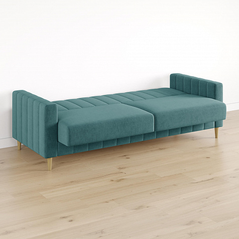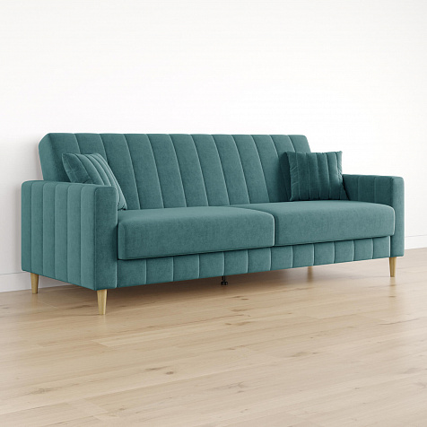 Механизм трансформации «Книжка». Чтобы разложить диван, нужно приподнять спинку и сиденье до щелчка и положить их вниз. Лучше ставить диван на расстоянии от стены, чтобы не двигать его при трансформации.