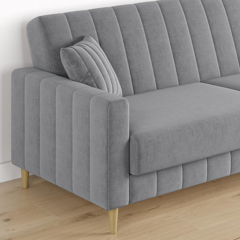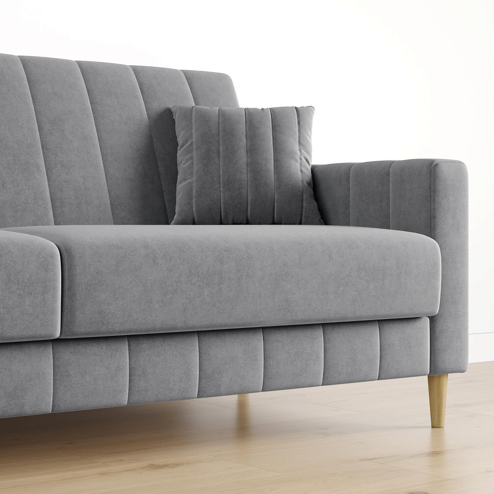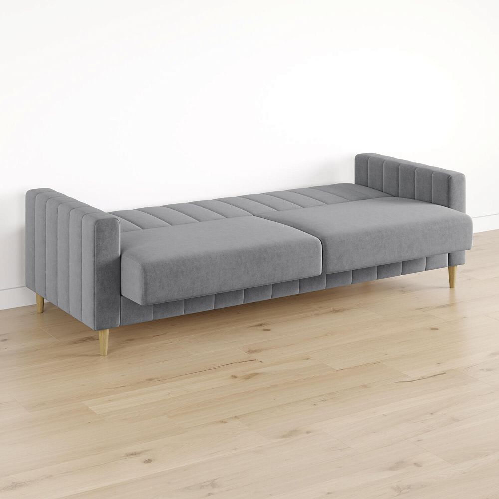 Диван «Бронкс» дополнит гостиную в современном или скандинавском стиле. Модель сочетает в себе минималистичный дизайн, спальное место и ящик для хранения. Задняя часть спинки выполнена в основной обивочной ткани, что дает возможность свободно размещать диван и зонировать комнату. Высокие опоры из натурального дерева создают легкий эффект невесомости и значительно облегчают процесс уборки.