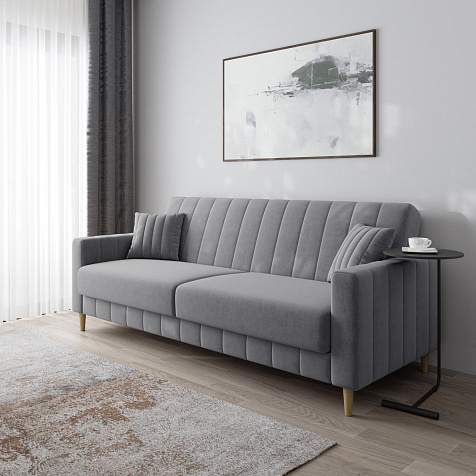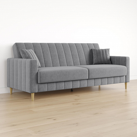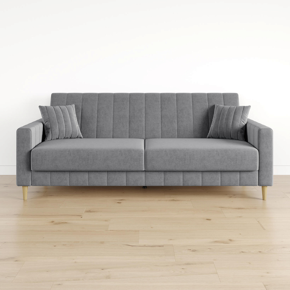 Механизм трансформации «Книжка». Чтобы разложить диван, нужно приподнять спинку и сиденье до щелчка и положить их вниз. Лучше ставить диван на расстоянии от стены, чтобы не двигать его при трансформации.