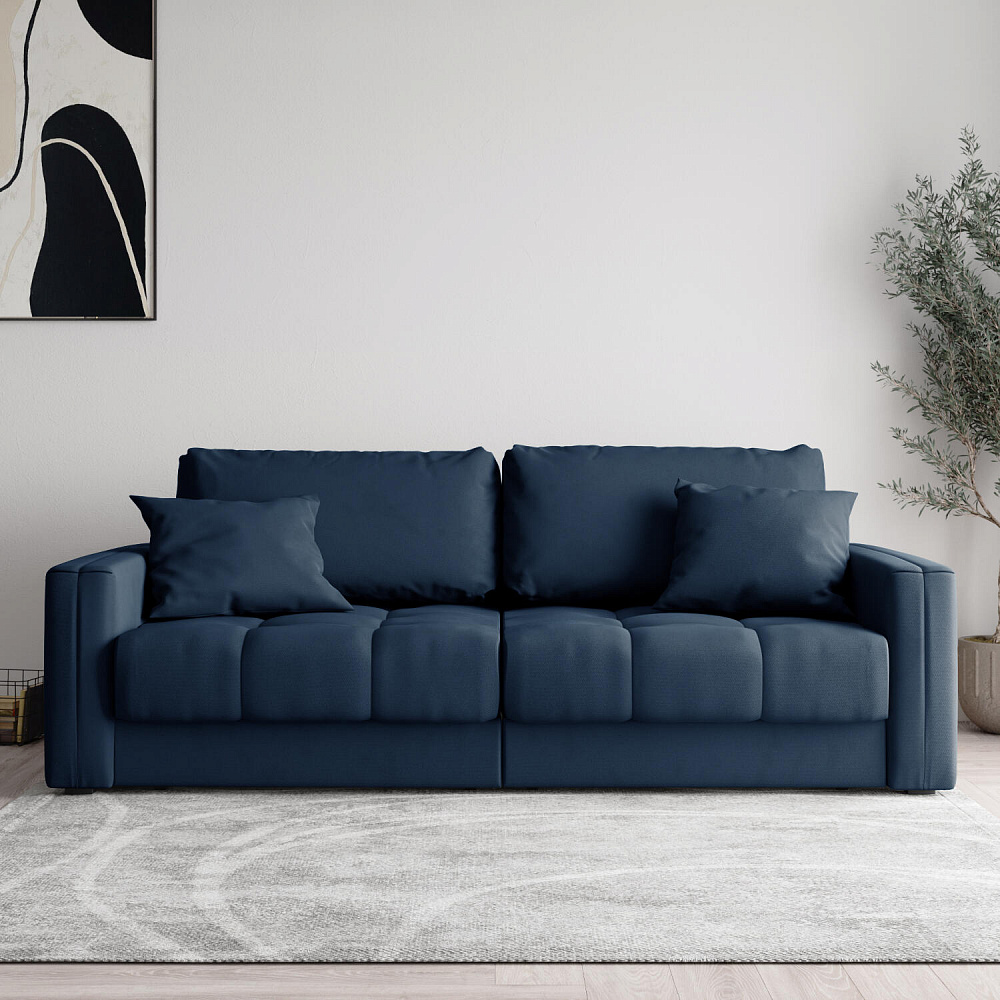 Диван «Дензел» — лучший вариант для ценителей комфорта в сочетании со стильным дизайном. Диван обладает глубокой посадкой, а приспинные и декоративные подушки позволят создать самое удобное место для отдыха. Спинка дивана выполнена в той же обивке, что и основная часть, что даёт возможность использовать диван для зонирования комнаты.