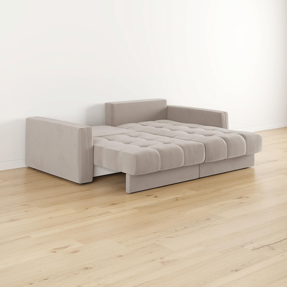 - Размер спального места — 200 х 147 см. Диван легко трансформируется в полноценное двуспальное место для сна и отдыха двух человек.