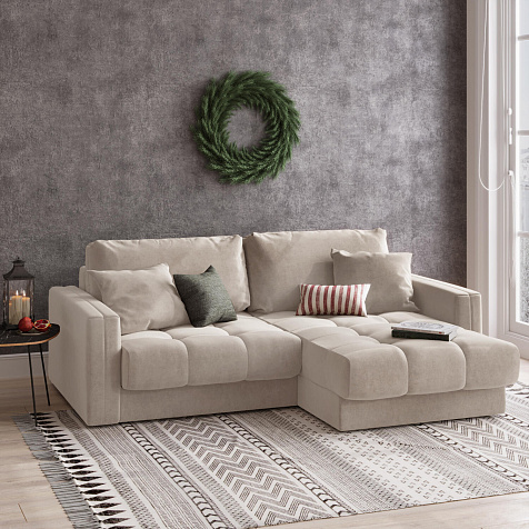 Угловой диван «Дензел» — лучший вариант для ценителей комфорта в сочетании со стильным дизайном. Диван обладает глубокой посадкой, а приспинные и декоративные подушки позволяют создать удобное место для отдыха. Угловая модель займёт своё идеальное место даже в небольшом пространстве. Спинка дивана выполнена в той же обивке, что и основная часть, что даёт возможность использовать диван для зонирования комнаты.