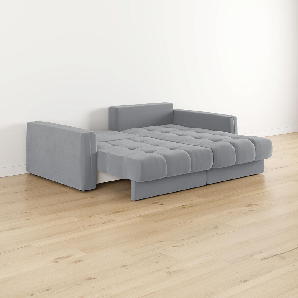 - Размер спального места — 200 х 147 см. Диван легко трансформируется в полноценное двуспальное место для сна и отдыха двух человек.
