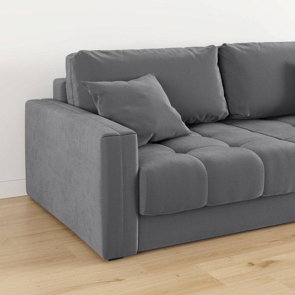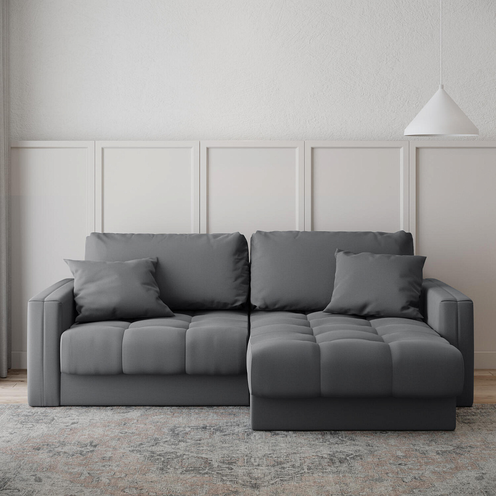 Угловой диван «Дензел» — лучший вариант для ценителей комфорта в сочетании со стильным дизайном. Диван обладает глубокой посадкой, а приспинные и декоративные подушки позволяют создать удобное место для отдыха. Угловая модель займёт своё идеальное место даже в небольшом пространстве. Спинка дивана выполнена в той же обивке, что и основная часть, что даёт возможность использовать диван для зонирования комнаты.