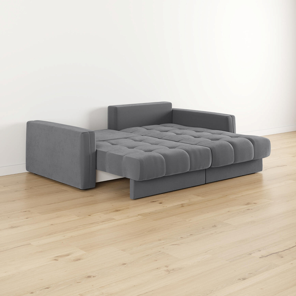 - Размер спального места — 200 х 147 см. Диван легко трансформируется в полноценное двуспальное место для сна и отдыха двух человек.