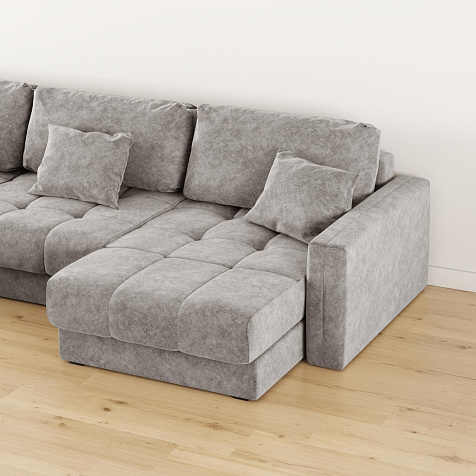 Диван «Дензел» — лучший вариант для ценителей комфорта и удобства в сочетании со стильным дизайном. Диван обладает глубокой посадкой, а приспинные и декоративные подушки позволят создать удобное место для отдыха. Угловая модель с оттоманкой займёт своё идеальное место даже в небольшом пространстве. Спинка модели выполнена в обивочной ткани, что даёт возможность использовать диван для зонирования комнаты.