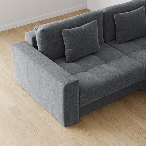 Диван «Дензел» — лучший вариант для ценителей комфорта и удобства в сочетании со стильным дизайном. Диван обладает глубокой посадкой, а приспинные и декоративные подушки позволят создать удобное место для отдыха. Угловая модель с оттоманкой займёт своё идеальное место даже в небольшом пространстве. Спинка модели выполнена в обивочной ткани, что даёт возможность использовать диван для зонирования комнаты.