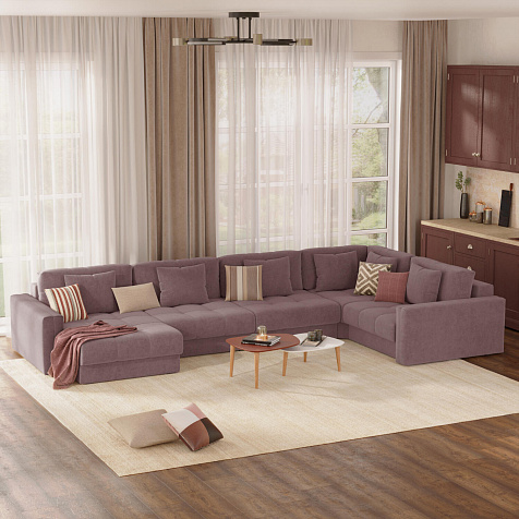 - Два вида подушек. В комплектацию дивана входят шесть приспинных и шесть декоративных подушек, которые позволяют корректировать глубину посадки.