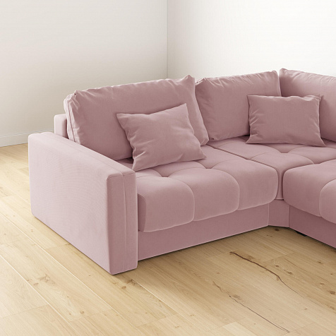 Диван «Дензел» — лучший вариант для ценителей комфорта и удобства в сочетании со стильным дизайном. Диван обладает глубокой посадкой, а приспинные и декоративные подушки позволят создать удобное место для отдыха. Угловая модель с оттоманкой займёт своё идеальное место даже в небольшом пространстве. Спинка модели выполнена в обивочной ткани, что даёт возможность использовать диван для зонирования комнаты.