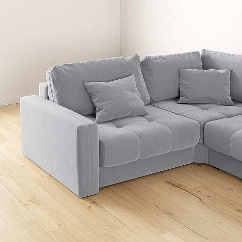 Диван «Дензел» — лучший вариант для ценителей комфорта и удобства в сочетании со стильным дизайном. Диван обладает глубокой посадкой, а приспинные и декоративные подушки позволят создать удобное место для отдыха. Угловая модель с оттоманкой займёт своё идеальное место даже в небольшом пространстве. Спинка модели выполнена в обивочной ткани, что даёт возможность использовать диван для зонирования комнаты.