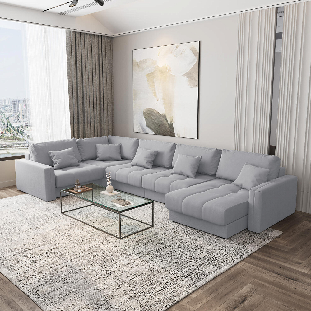 - Два вида подушек. В комплектацию дивана входят шесть приспинных и шесть декоративных подушек, которые позволяют корректировать глубину посадки.