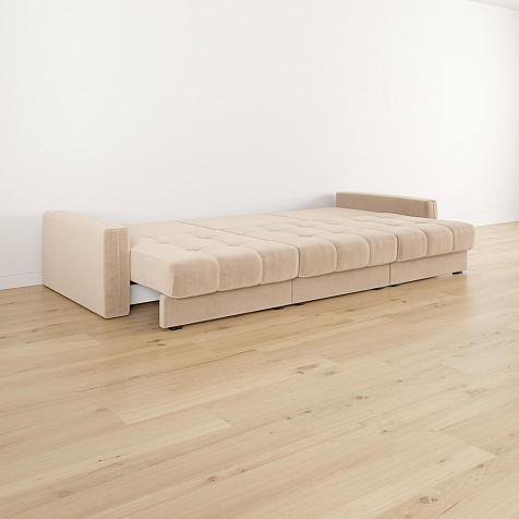 - Размер спального места — 300 х 167 см. Диван легко трансформируется в полноценное двуспальное место.