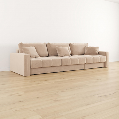 Диван «Дензел» — лучший вариант для ценителей комфорта в сочетании со стильным дизайном. Диван обладает глубокой посадкой, а приспинные и декоративные подушки позволят создать самое удобное место для отдыха. Спинка дивана выполнена в той же обивке, что и основная часть, что даёт возможность использовать диван для зонирования комнаты.