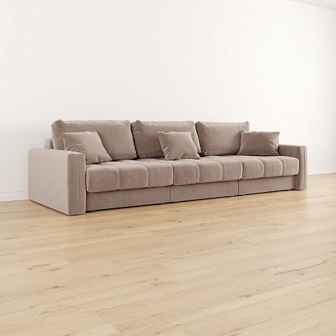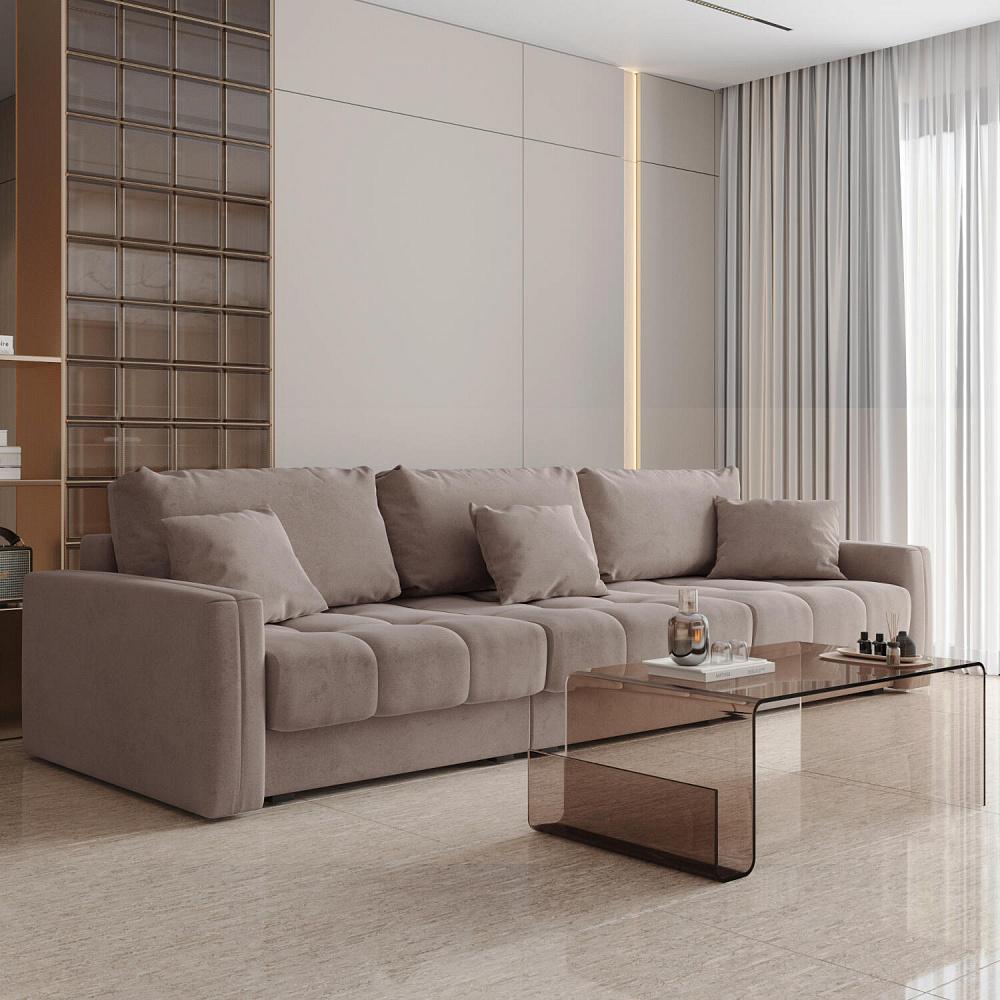 Диван «Дензел» — лучший вариант для ценителей комфорта в сочетании со стильным дизайном. Диван обладает глубокой посадкой, а приспинные и декоративные подушки позволят создать самое удобное место для отдыха. Спинка дивана выполнена в той же обивке, что и основная часть, что даёт возможность использовать диван для зонирования комнаты.