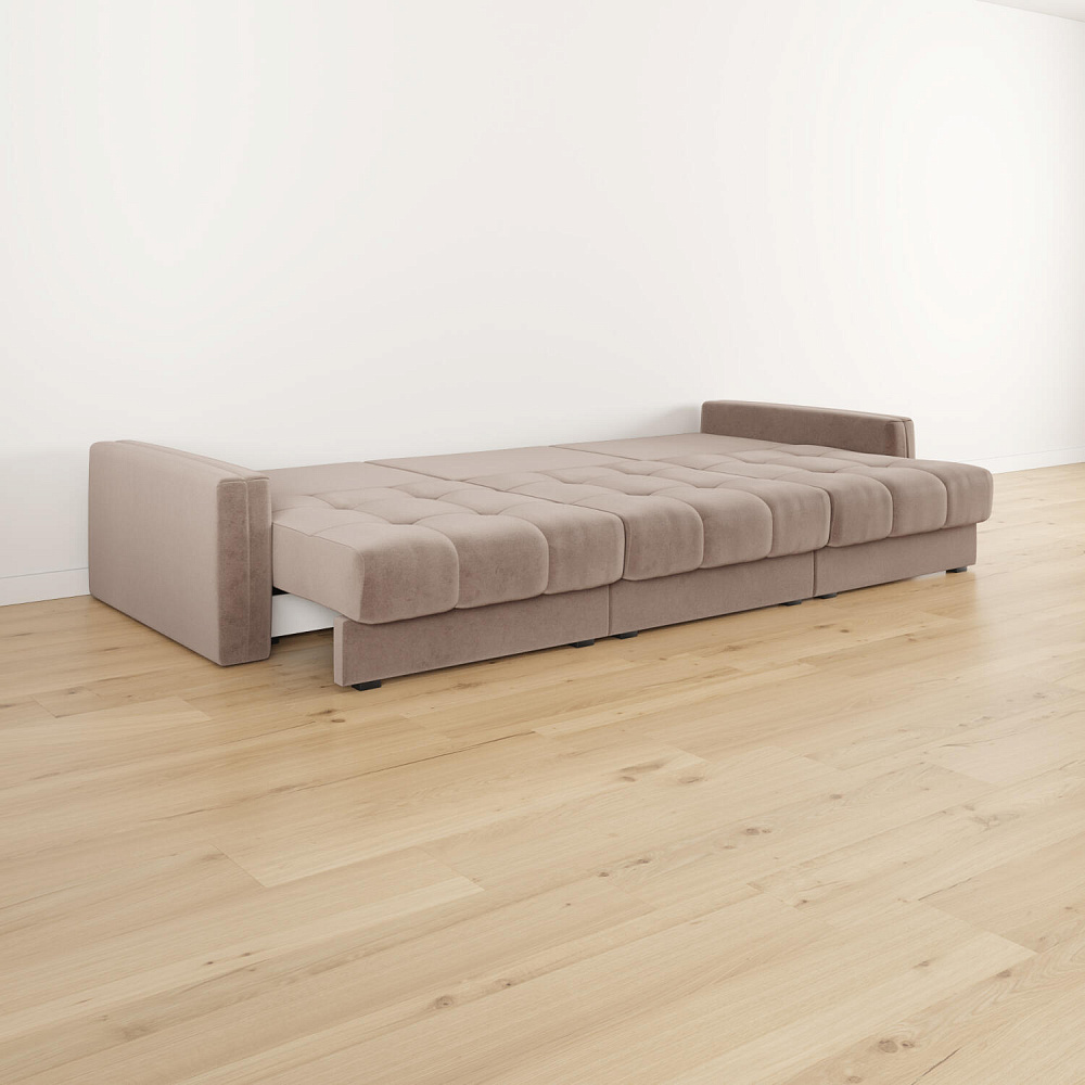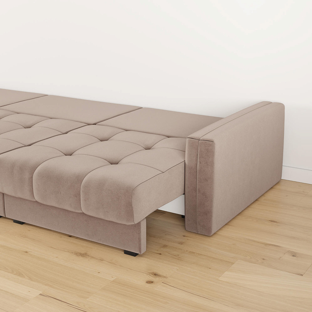 - Размер спального места — 300 х 167 см. Диван легко трансформируется в полноценное двуспальное место.