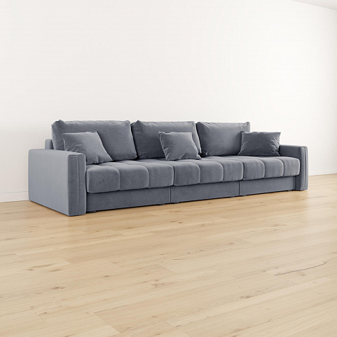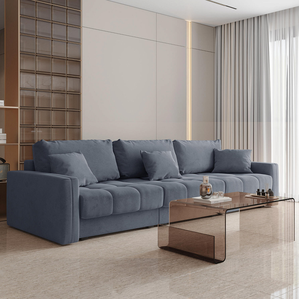 Диван «Дензел» — лучший вариант для ценителей комфорта в сочетании со стильным дизайном. Диван обладает глубокой посадкой, а приспинные и декоративные подушки позволят создать самое удобное место для отдыха. Спинка дивана выполнена в той же обивке, что и основная часть, что даёт возможность использовать диван для зонирования комнаты.