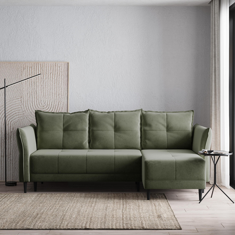 Универсальный угол. Диван подстроится под условия помещения — оттоманка устанавливается как слева, так и справа.