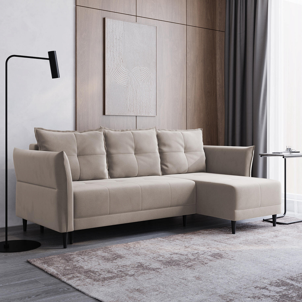 Универсальный угол. Диван подстроится под условия помещения — оттоманка устанавливается как слева, так и справа.